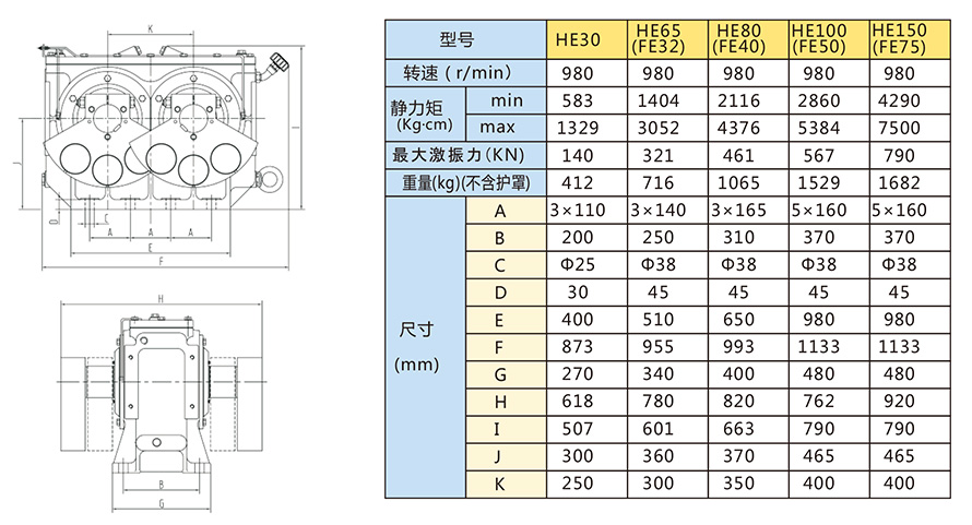 HE(FE)系列激振器技術(shù)參數(shù)